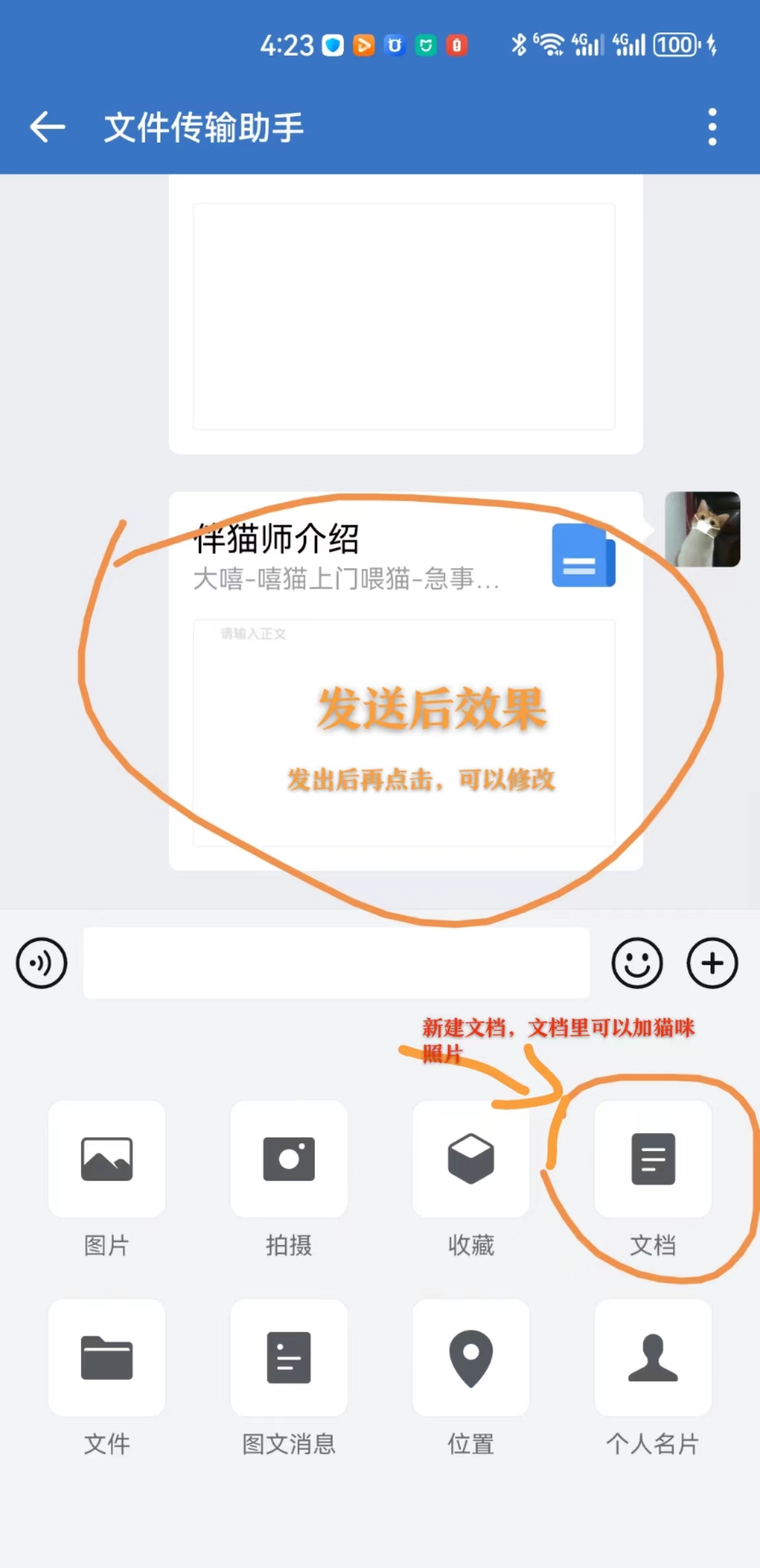 撰写写个人介绍,每次对接新客户时,将个人介绍发在群里企业微信:聊天窗口-点击右下角加号-使用'文档'功能撰写个人微信:使用微信收藏功能撰写